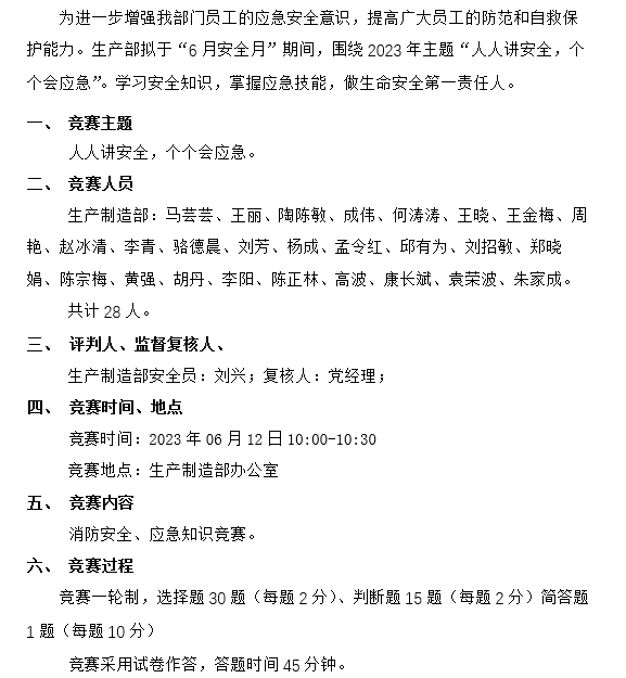 2023年第13期技能競賽-生產(chǎn)制造部 消防知識競賽