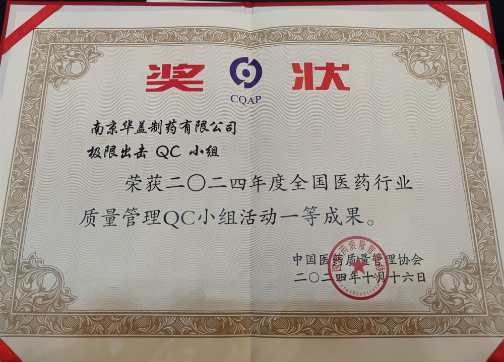 2024年10月16日,第45屆全國醫(yī)藥行業(yè)質(zhì)量管理QC小組成果交流大會于在湖南省長沙市順利閉幕。會上宣布南京華蓋制藥有限公司“極限出擊QC小組”獲得2024年度全國醫(yī)藥行業(yè)質(zhì)量管理小組活動一等獎。 本次有來自23 個省、市、自治區(qū)、直轄市,覆蓋藥品研制、生產(chǎn)、經(jīng)營等200多家優(yōu)秀企業(yè)共720項成果,發(fā)表會上各參賽代表精神飽滿、嚴(yán)謹(jǐn)大方的分享了自己的創(chuàng)新成果,充分展現(xiàn)了“新質(zhì)發(fā)展 創(chuàng)優(yōu)爭先”的大會主題。